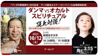 【ダイジェスト】「ダンマvsオカルト スピリチュアル頂上対談!」石川勇一先生×角由紀子総裁(『ブッダの瞑想修行』刊行記念サンガ新社セミナー)