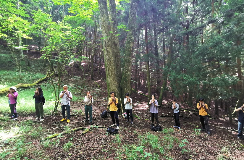 台風が来ていましたが、幸いにも2日目に楽しみにしていた山登りの行や法螺貝を吹くことも出来ました。悲しい気持ちが生じてから腹部の力が入りきらないような身体感覚があったのですが、感謝とともに悲しみを昇華させる気持ちで、ただただ息を吹き込み、終わった後は心地よい疲労感とすがすがしさがありました。法螺貝の音の振動には、心の震えに作用する力を感じました。